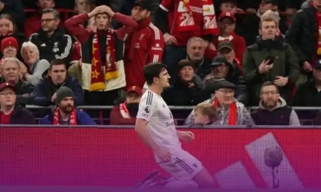 就此,马奎尔破门给出了滑跪庆祝,而现场的曼联球迷也是非常疯狂的相拥、呐喊。